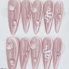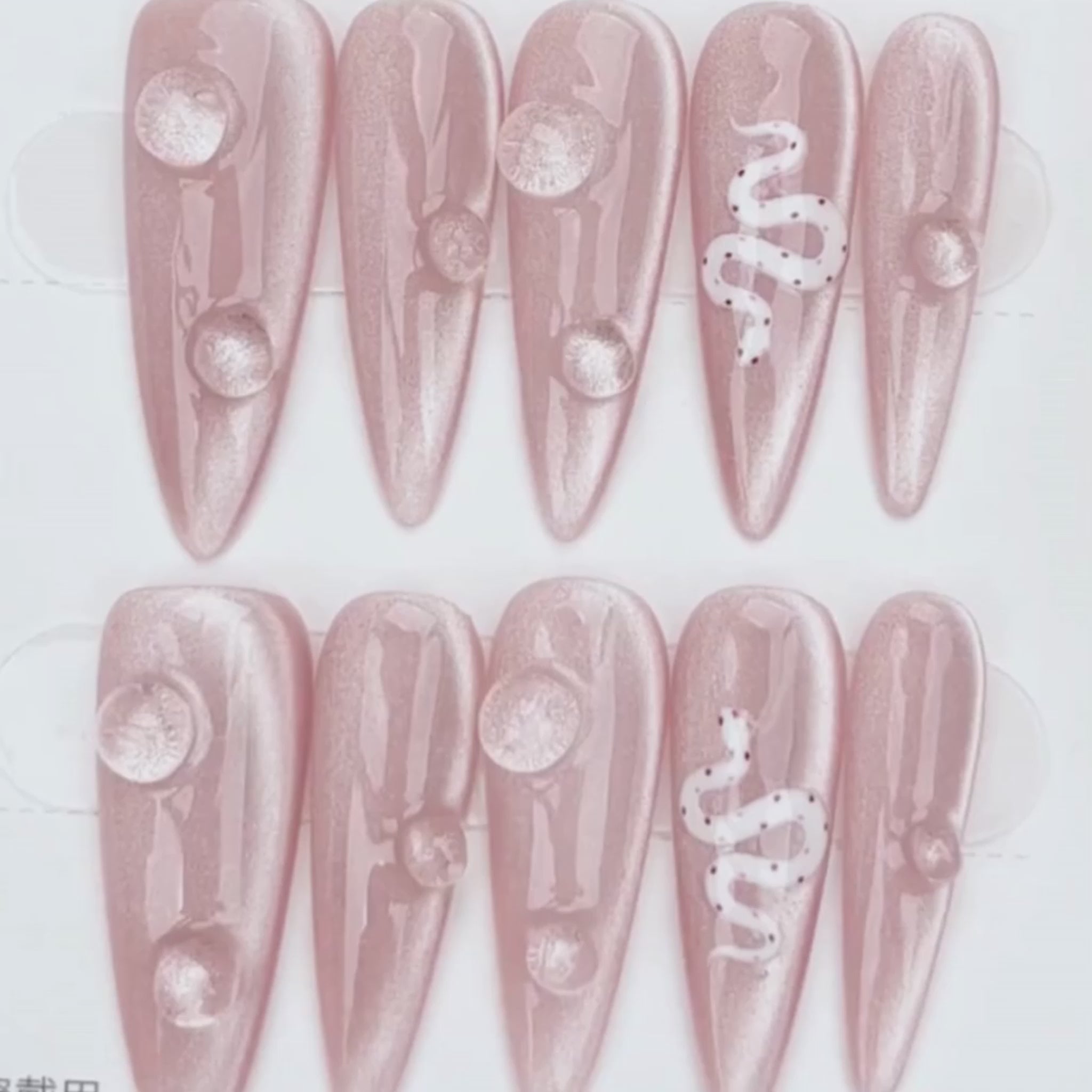 💅 Style Code: L0356-A 🎨 Color: Soft pink with white swirl and bubble details 💎 Finish: Glossy shimmer with 3D accents 📐 Shape: Stiletto 📏 Size: (XS•S•M•L)