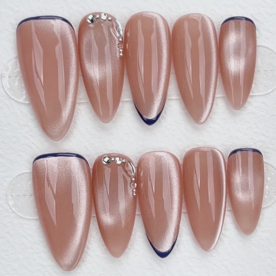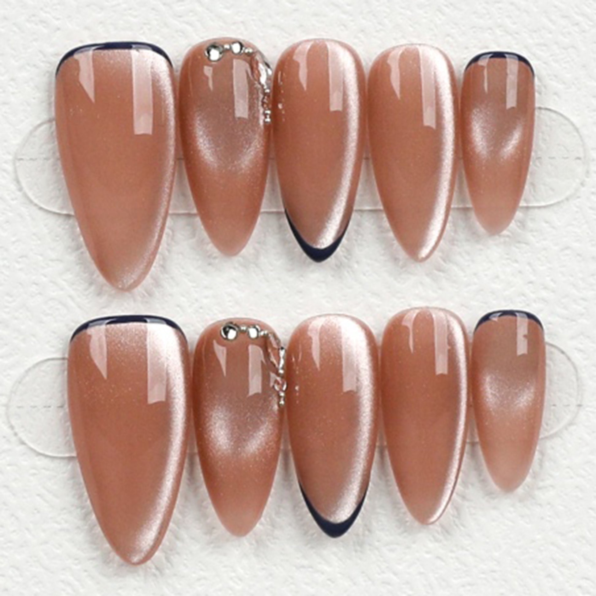 ✨ Style Code: L0503-A 🎨 Color: Bronze with Midnight Tips 💅 Finish: Glossy Shimmer 🔷 Shape: Almond 📏 Length: Long