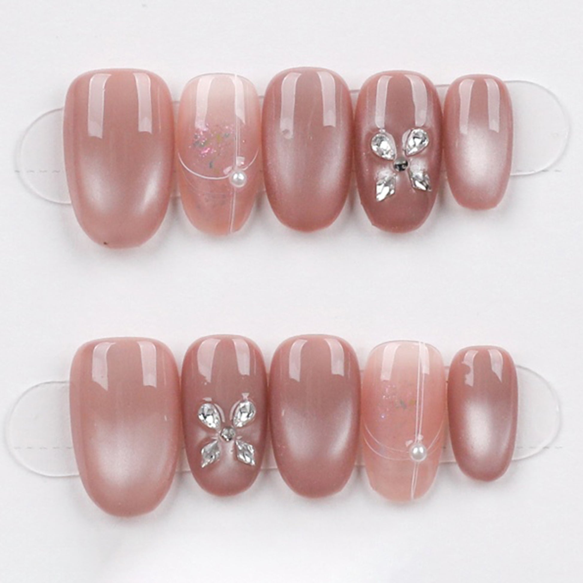 Softly elegant and effortlessly feminine, the Rosy Petal Butterfly Press-On Nail Set features a dreamy dusty rose base kissed with shimmer and delicate detailing. Adorned with sparkling rhinestone butterflies, fine pearl accents, and subtle white linework, this set blends charm with understated glamor — perfect for brunch dates, bridal showers, or everyday sophistication.