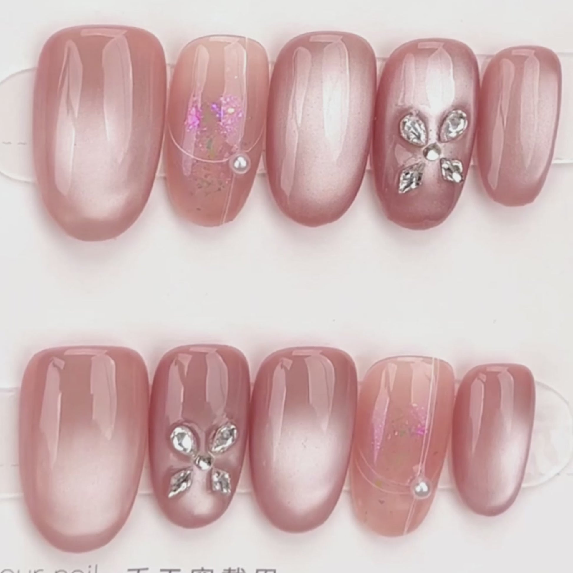 ✨ Details: 💅 Style Code: L0478-A 🎨 Color: Rosy Pink with Iridescent Accents 🌟 Finish: Glossy with Soft Shimmer 💎 Shape: Oval 📏 Length: Medium