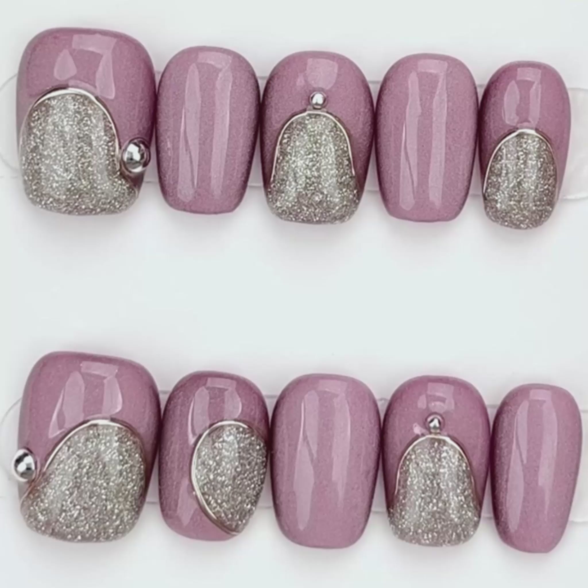 Soft shimmer meets silver sparkle in this modern-glam set. Rose Glitz Elegance blends a dusty rose shimmer base with textured silver glitter and raised metallic accents — giving you a luxurious, dimensional look that catches the light from every angle.