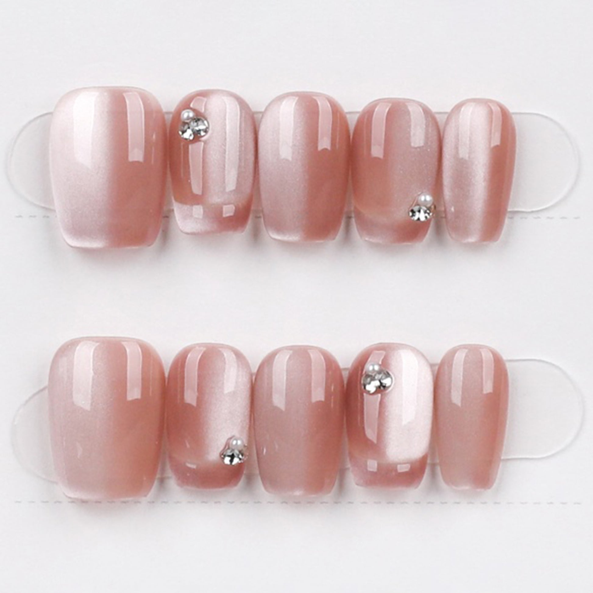 🦋 Style Code: L0473-A 🌸 Color: Rosewood Nude ✨ Finish: Glossy with Crystal Accents 💅 Shape: Short Square 📏 Length: Short