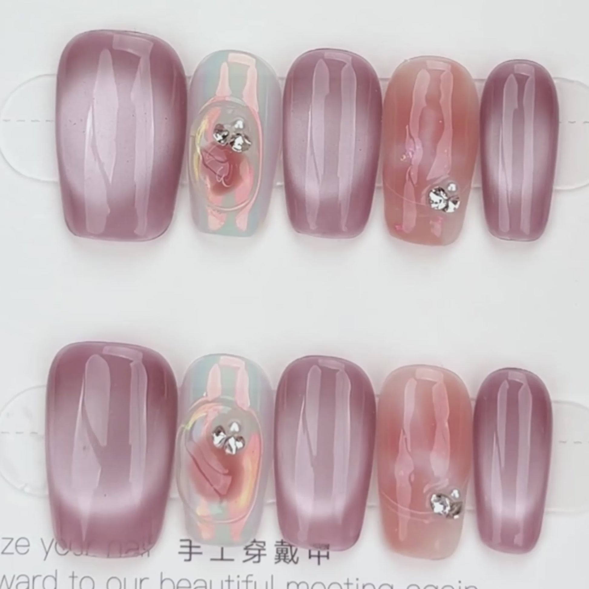 Elevate your look with this dreamy fusion of rosewood, blush marble, and milky iridescent accents. Featuring a luxurious swirl design and crystal embellishments, Blush Marble Dream is made to mesmerize. The perfect balance of elegance and modern charm, ready to press on and go.