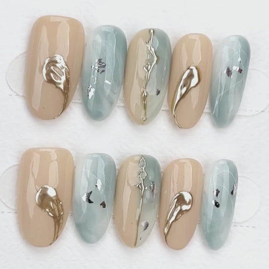 Flow with understated elegance in our Silver Drift Stone Press-On Nail Set. This design blends soft nude and misty marble-grey tones with silver foil accents and liquid metal swirls, evoking the calm of ocean-polished stones. Whether you're going for everyday chic or minimalist glam, this set delivers a modern, earthy edge.